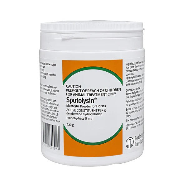 Sputolysin is bronchial mucolytic agent to aid in the treatment of respiratory disease in horses, all respiratory infections with increased secretions, acute and subacute bronchitis, chronic respiratory disease with mucus, infection of the upper airway and foal pneumonia.