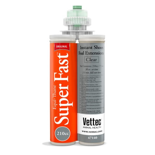 The Vettec SuperFast 210cc adhesive creates custom shoes in minutes. With a faster setting time of 30 seconds, the 210cc holds 30% more material than previous models.